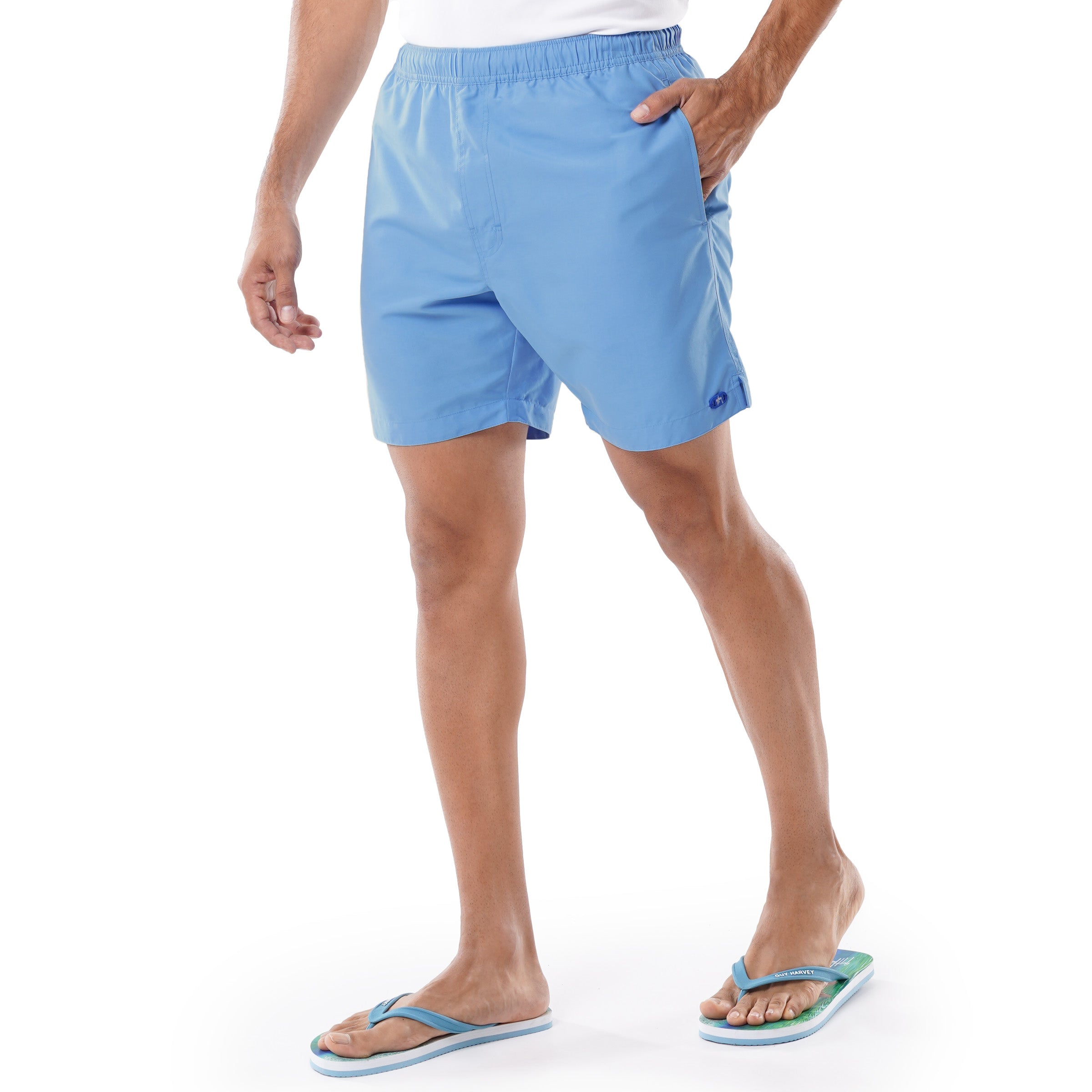 Men's Light Blue Solid 7" Swim Trunks