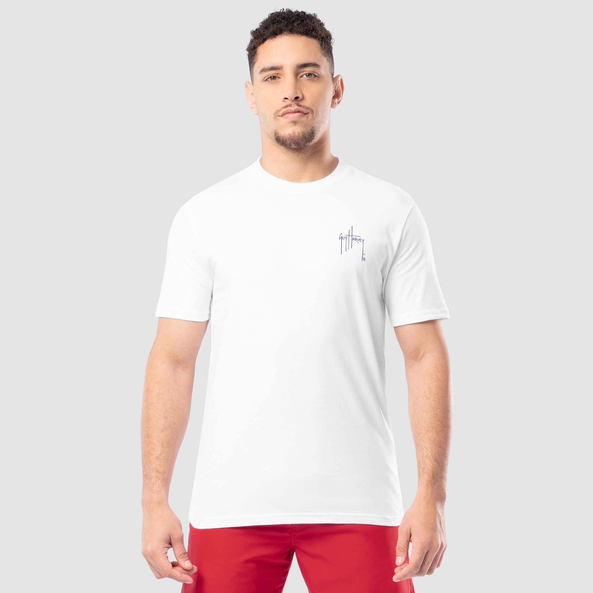 No other artist captures the dazzling colors of marine life like Guy Harvey. His years of diving and fishing along with his knowledge as a marine biologist adds authenticity to his paintings and makes his line of premium t-shirts wearable art. This 100% cotton short sleeve t-shirt features a patriotic image of Guy's original artwork on the back. Machine washable.