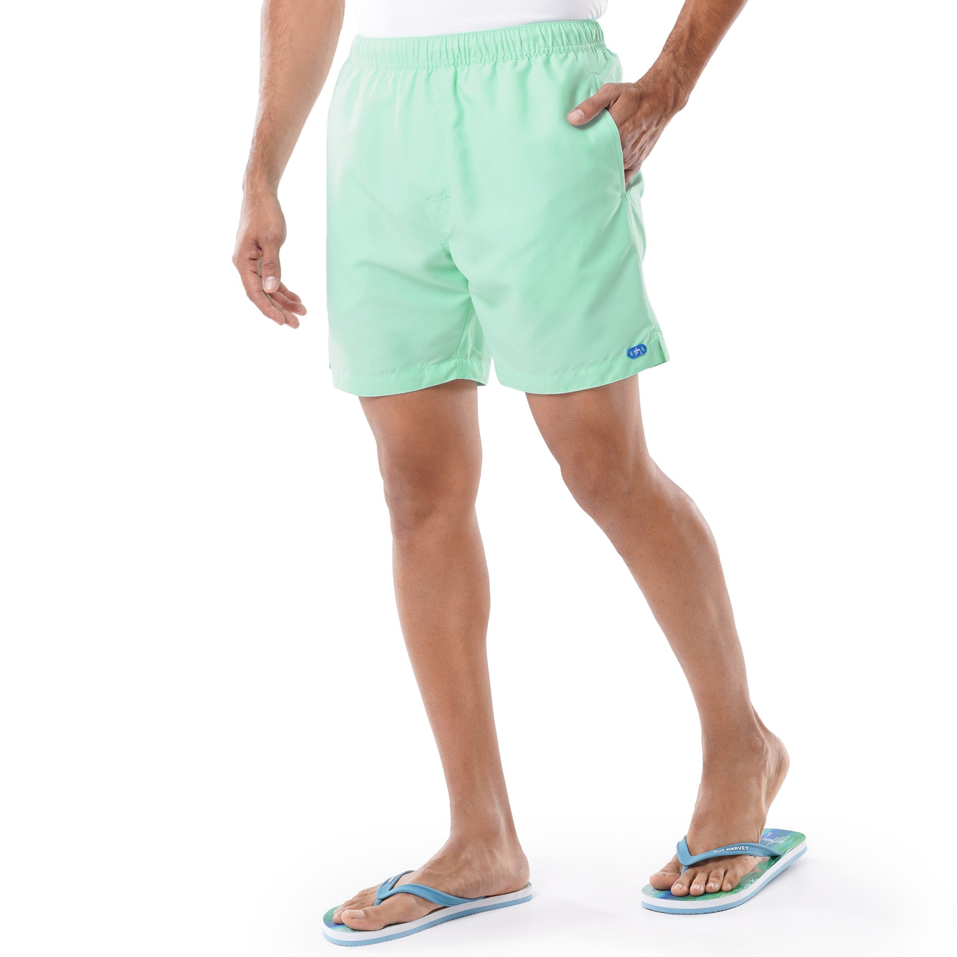 Men's Light Green Solid 7" Swim Trunks